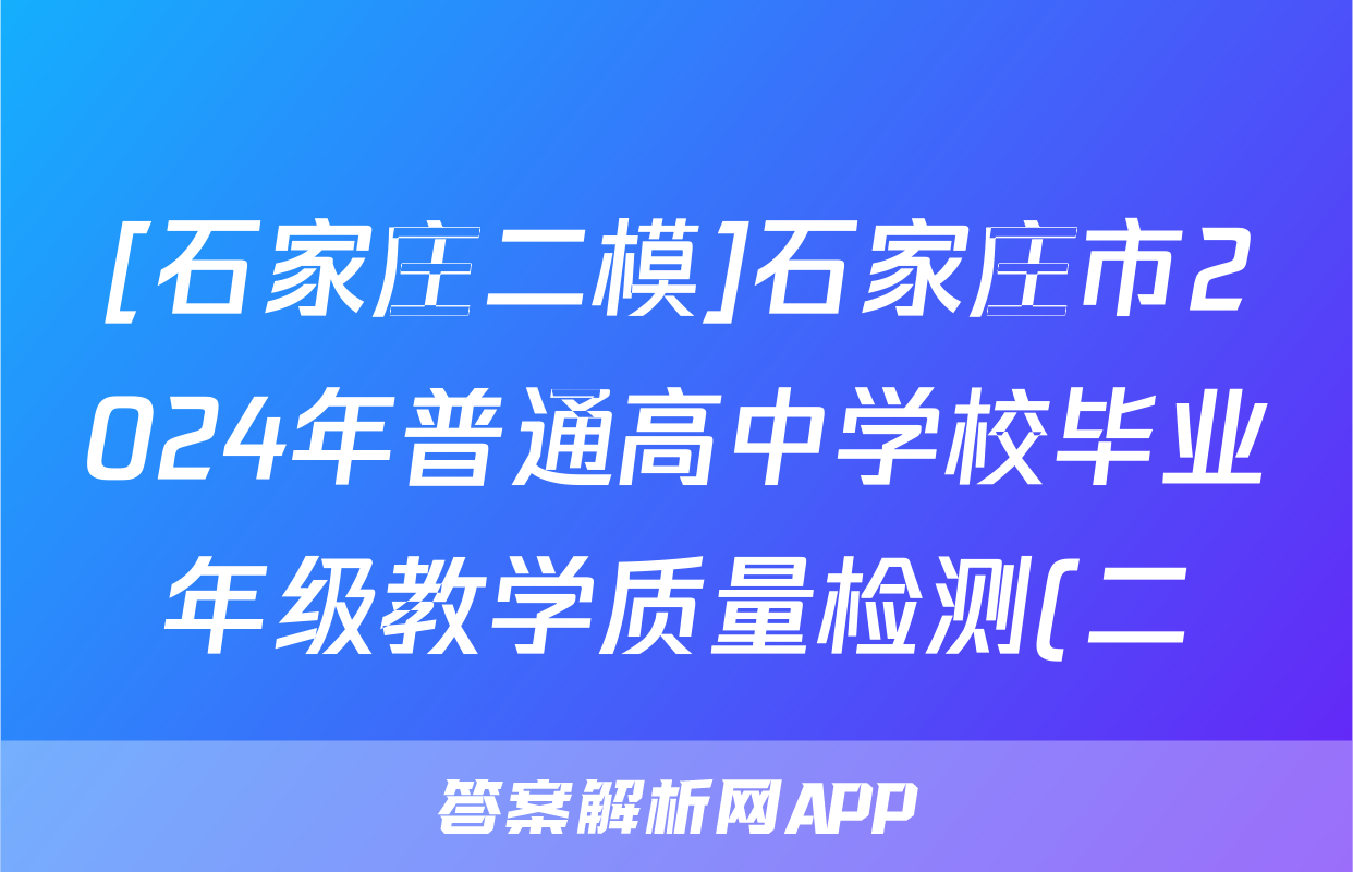 [石家庄二模]石家庄市2024年普通高中学校毕业年级教学质量检测(二)理数答案正在持续更新,目前2024届最新高考模拟示范卷答案网为大家整理了相关试题及答案,供大家查缺补漏,高效提升成绩。