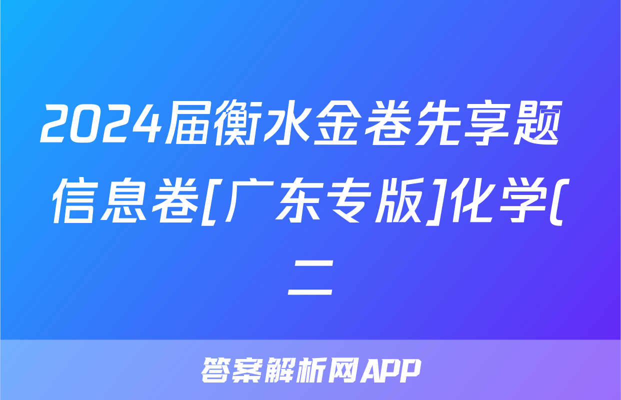 2024届衡水金卷先享题 信息卷[广东专版]化学(二)2答案正在持续更新,目前2024届最新高考模拟示范卷答案网为大家整理了相关试题及答案,供大家查缺补漏,高效提升成绩。