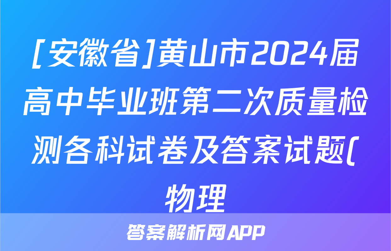 [安徽省]黄山市2024届高中毕业班第二次质量检测各科试卷及答案试题(物理)正在持续更新,目前2024届最新高考模拟示范卷答案网为大家整理了相关试题及答案,供大家查缺补漏,高效提升成绩。