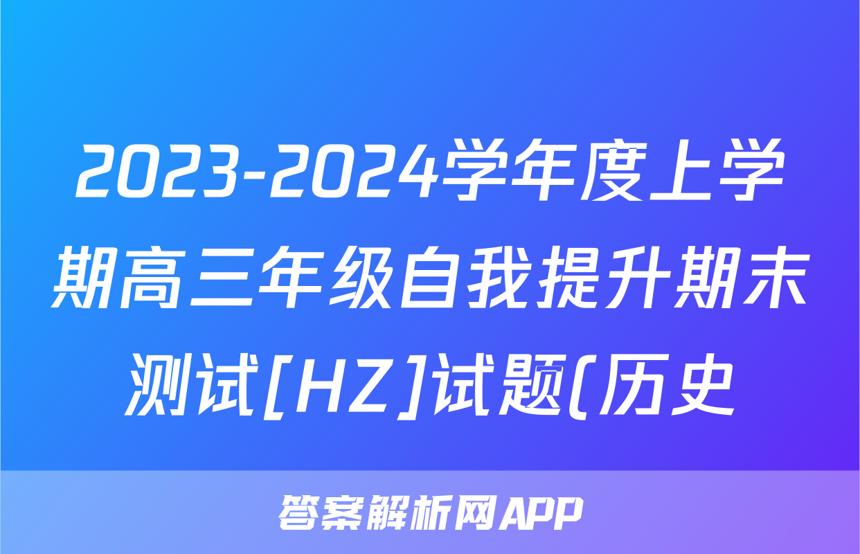 2023-2024学年度上学期高三年级自我提升期末测试[HZ]试题(历史)正在持续更新,目前2024届最新高考模拟示范卷答案网为大家整理了相关试题及答案,供大家查缺补漏,高效提升成绩。