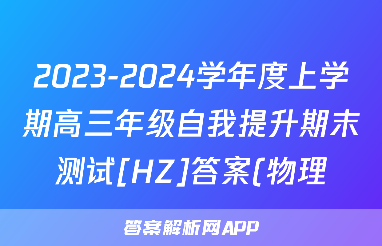 2023-2024学年度上学期高三年级自我提升期末测试[HZ]答案(物理)正在持续更新,目前2024届最新高考模拟示范卷答案网为大家整理了相关试题及答案,供大家查缺补漏,高效提升成绩。