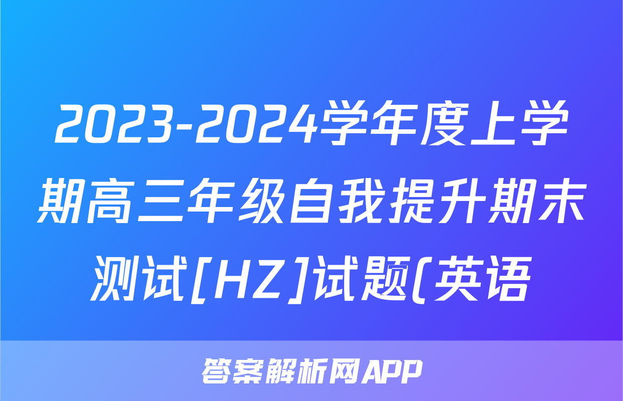 2023-2024学年度上学期高三年级自我提升期末测试[HZ]试题(英语)正在持续更新,目前2024届最新高考模拟示范卷答案网为大家整理了相关试题及答案,供大家查缺补漏,高效提升成绩。