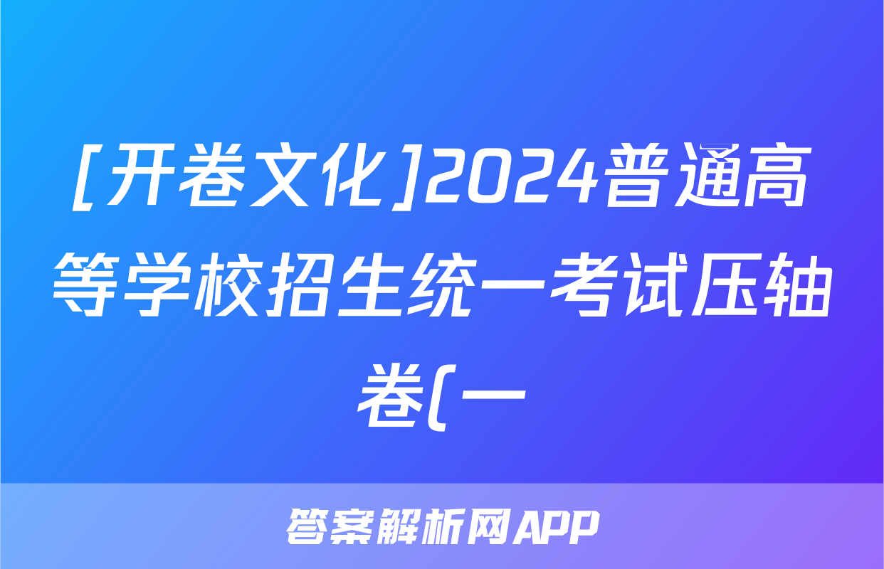 [开卷文化]2024普通高等学校招生统一考试压轴卷(一)1答案(语文)正在持续更新,目前2024届最新高考模拟示范卷答案网为大家整理了相关试题及答案,供大家查缺补漏,高效提升成绩。