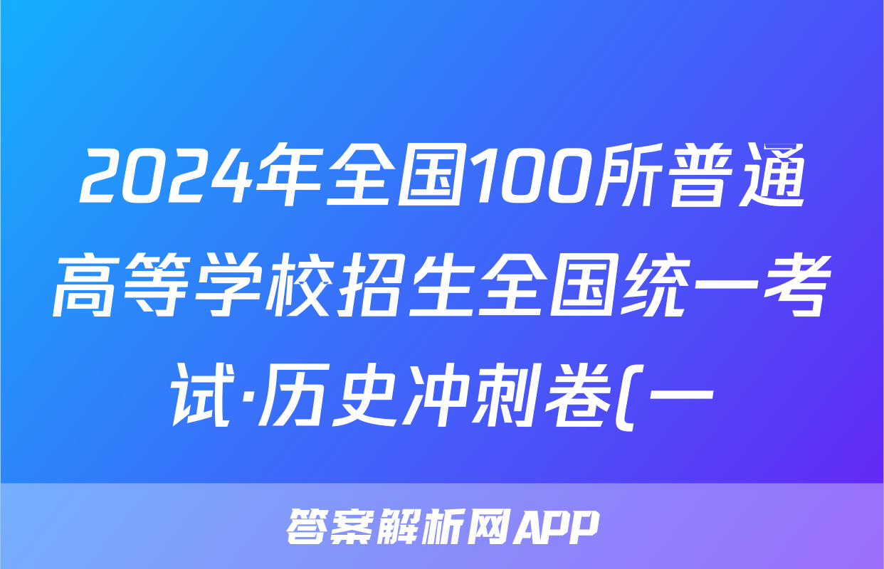 2024年全国100所普通高等学校招生全国统一考试·历史冲刺卷(一)1[24·(新高考)CCJ·历史·SD]试题正在持续更新,目前2024届最新高考模拟示范卷答案网为大家整理了相关试题及答案,供大家查缺补漏,高效提升成绩。