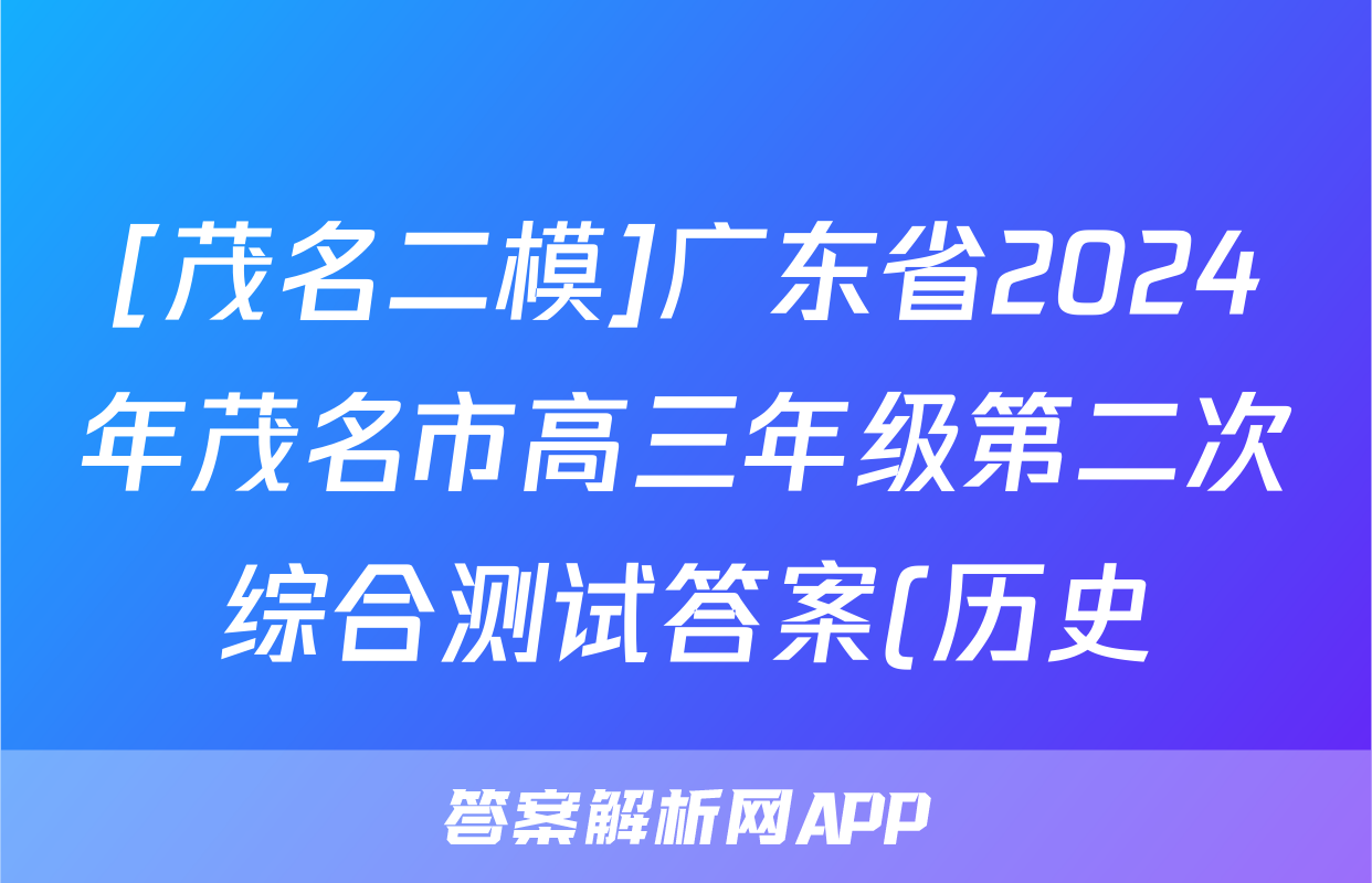 [茂名二模]广东省2024年茂名市高三年级第二次综合测试答案(历史)正在持续更新,目前2024届最新高考模拟示范卷答案网为大家整理了相关试题及答案,供大家查缺补漏,高效提升成绩。