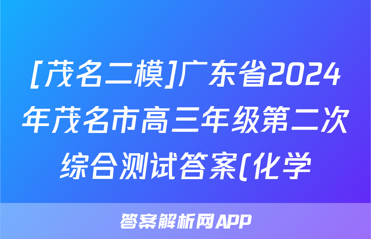 [茂名二模]广东省2024年茂名市高三年级第二次综合测试答案(化学)正在持续更新,目前2024届最新高考模拟示范卷答案网为大家整理了相关试题及答案,供大家查缺补漏,高效提升成绩。
