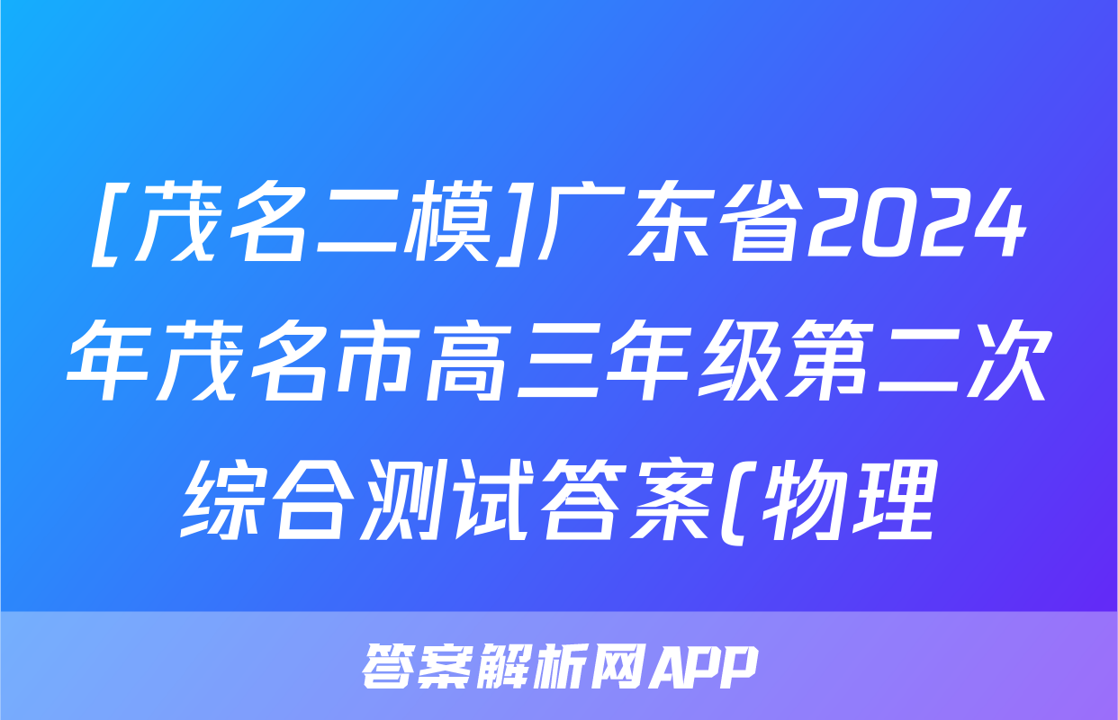 [茂名二模]广东省2024年茂名市高三年级第二次综合测试答案(物理)正在持续更新,目前2024届最新高考模拟示范卷答案网为大家整理了相关试题及答案,供大家查缺补漏,高效提升成绩。