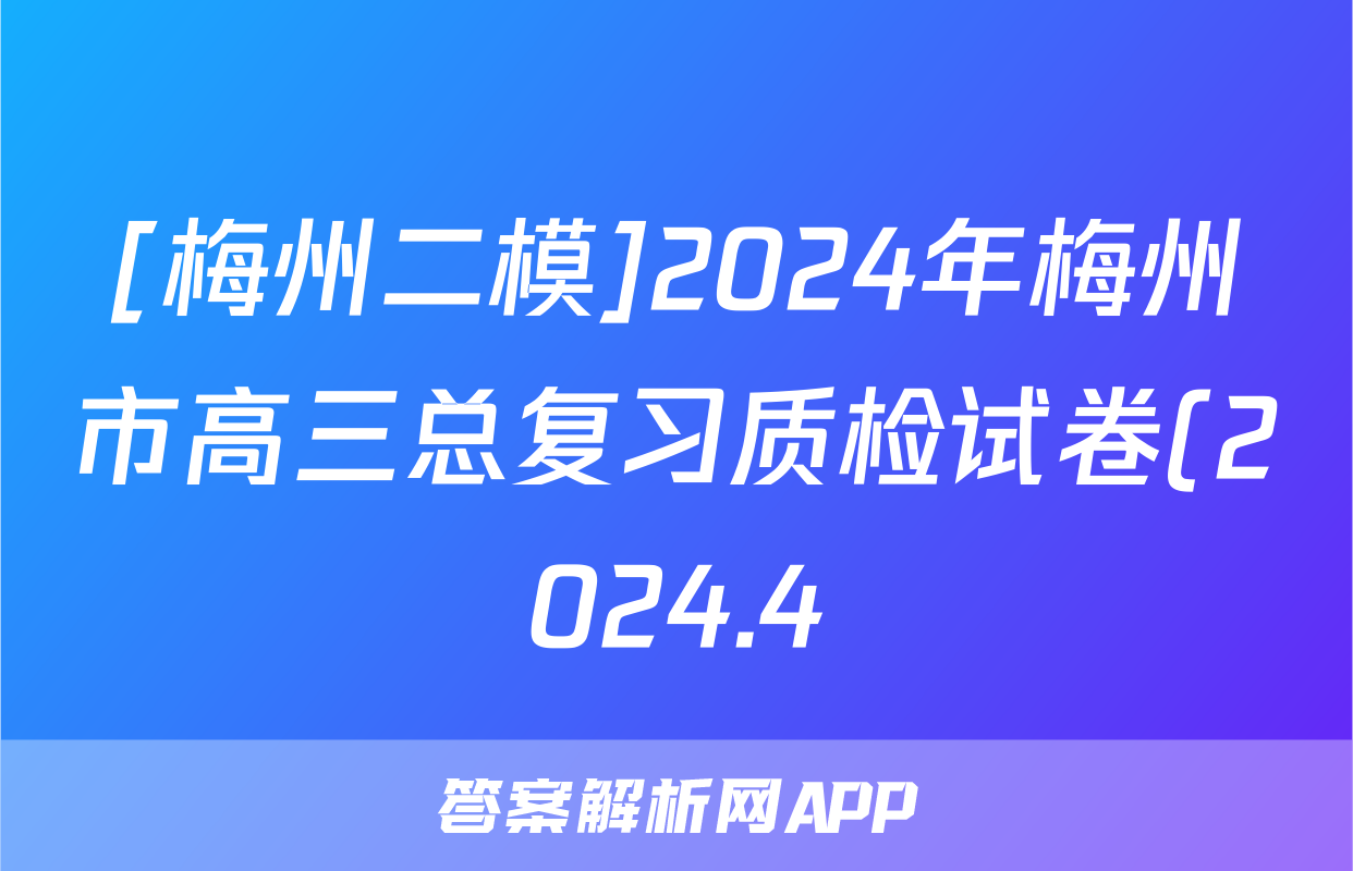 [梅州二模]2024年梅州市高三总复习质检试卷(2024.4)试题(生物)正在持续更新,目前2024届最新高考模拟示范卷答案网为大家整理了相关试题及答案,供大家查缺补漏,高效提升成绩。