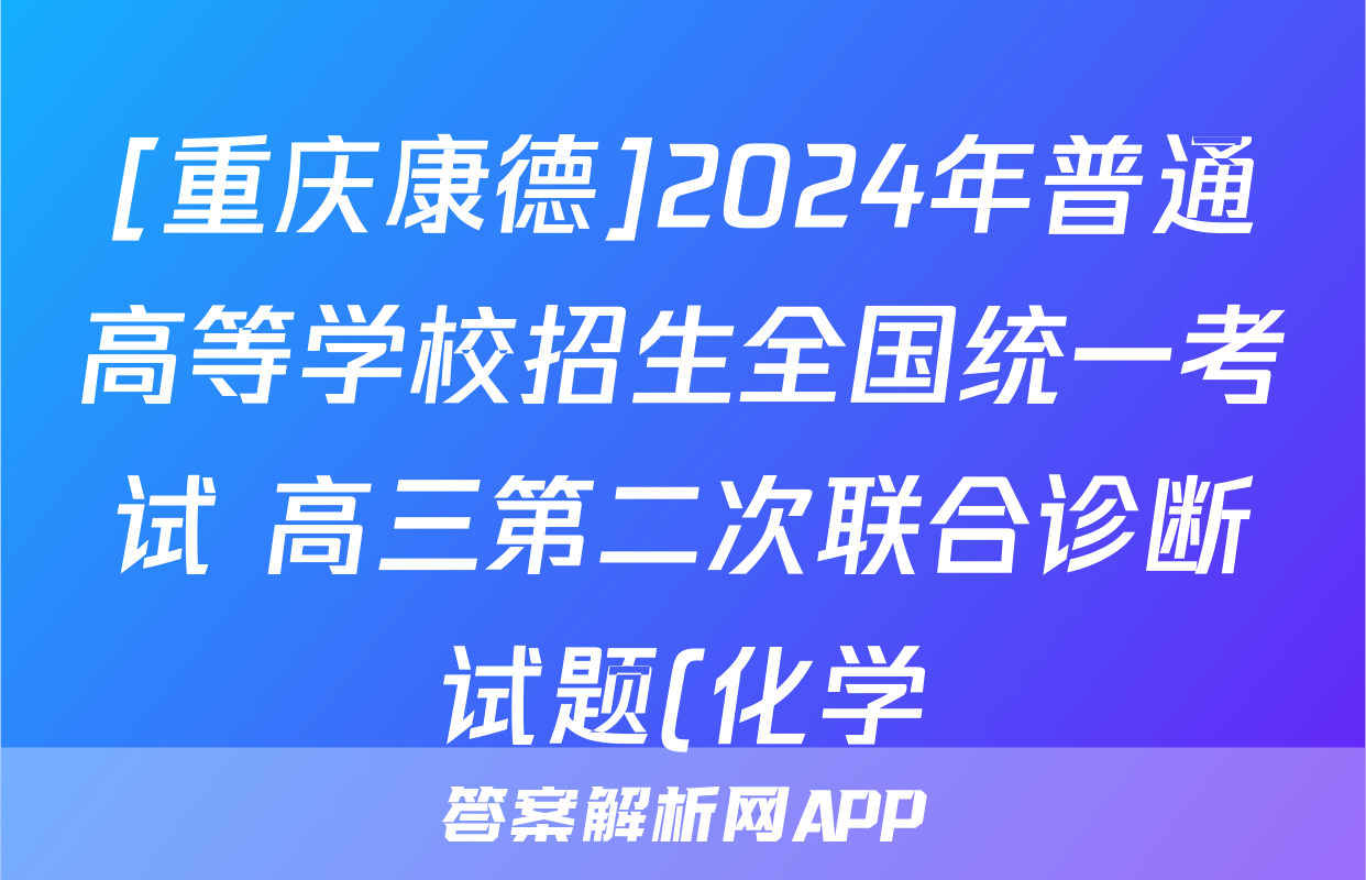 [重庆康德]2024年普通高等学校招生全国统一考试 高三第二次联合诊断试题(化学)正在持续更新,目前2024届最新高考模拟示范卷答案网为大家整理了相关试题及答案,供大家查缺补漏,高效提升成绩。