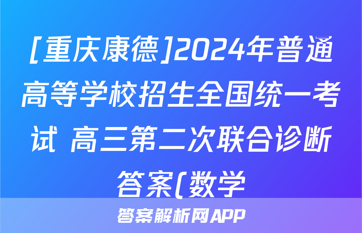 [重庆康德]2024年普通高等学校招生全国统一考试 高三第二次联合诊断答案(数学)正在持续更新,目前2024届最新高考模拟示范卷答案网为大家整理了相关试题及答案,供大家查缺补漏,高效提升成绩。