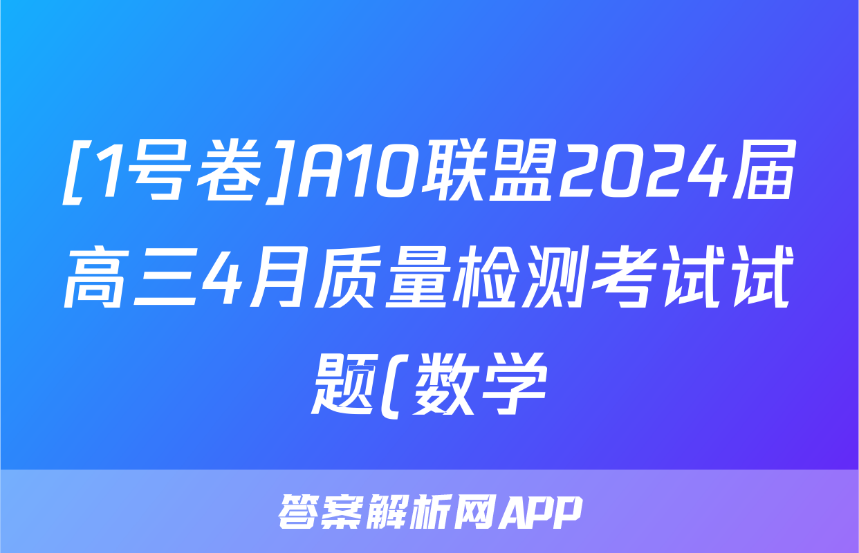 [1号卷]A10联盟2024届高三4月质量检测考试试题(数学)正在持续更新,目前2024届最新高考模拟示范卷答案网为大家整理了相关试题及答案,供大家查缺补漏,高效提升成绩。