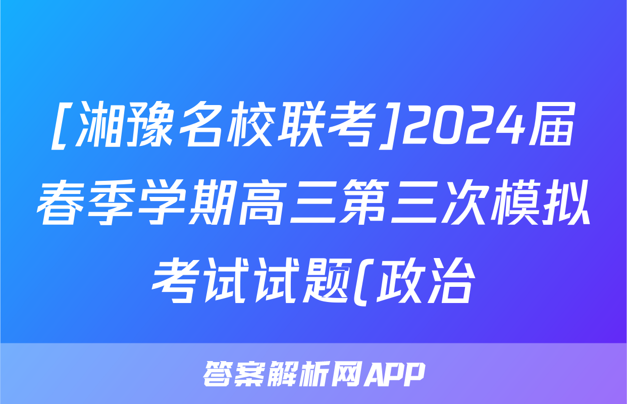 [湘豫名校联考]2024届春季学期高三第三次模拟考试试题(政治)正在持续更新,目前2024届最新高考模拟示范卷答案网为大家整理了相关试题及答案,供大家查缺补漏,高效提升成绩。
