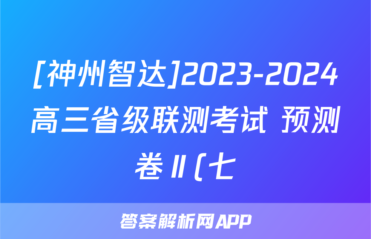 [神州智达]2023-2024高三省级联测考试 预测卷Ⅱ(七)7答案(化学)正在持续更新,目前2024届最新高考模拟示范卷答案网为大家整理了相关试题及答案,供大家查缺补漏,高效提升成绩。