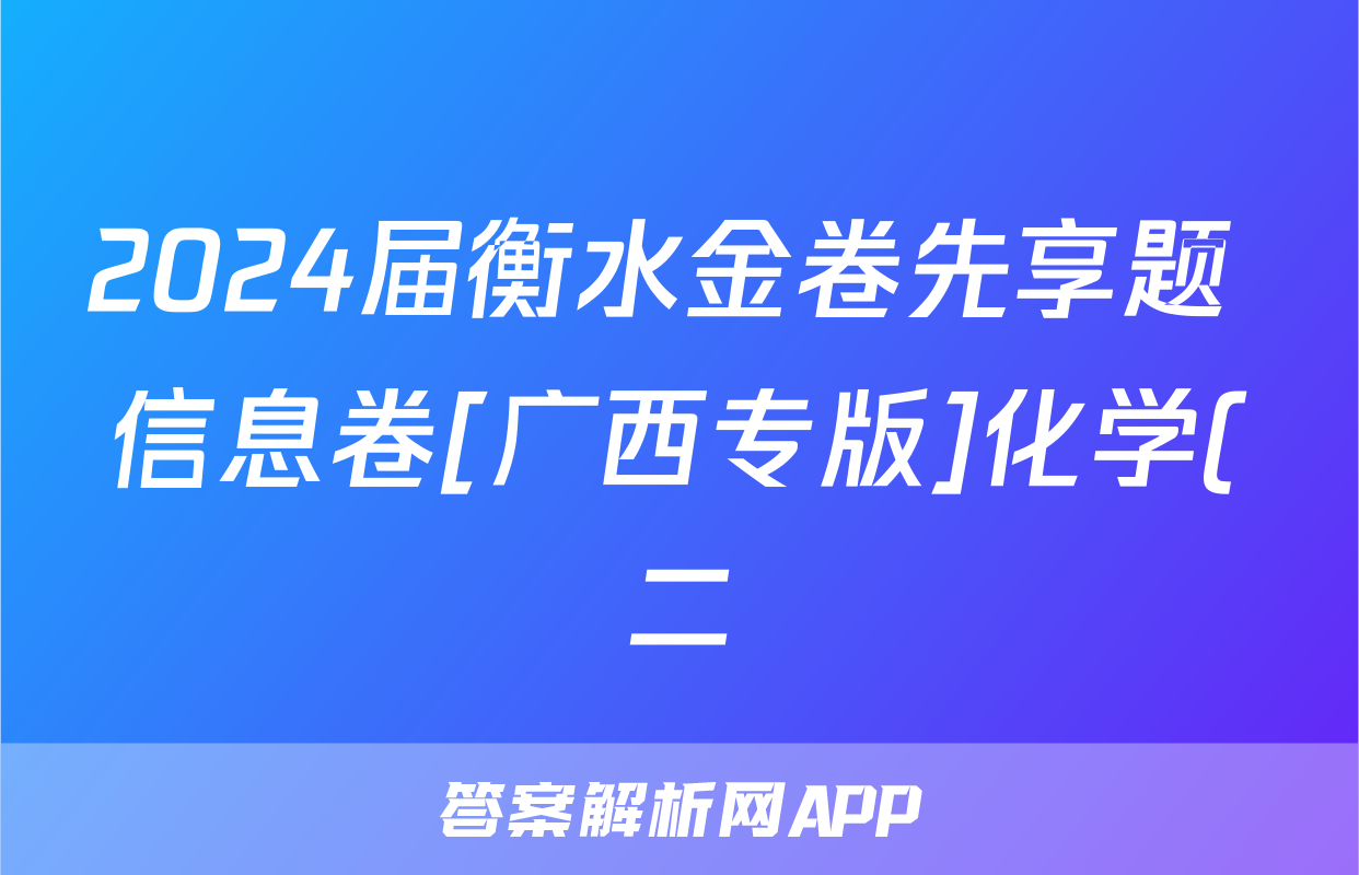 2024届衡水金卷先享题 信息卷[广西专版]化学(二)2答案正在持续更新,目前2024届最新高考模拟示范卷答案网为大家整理了相关试题及答案,供大家查缺补漏,高效提升成绩。