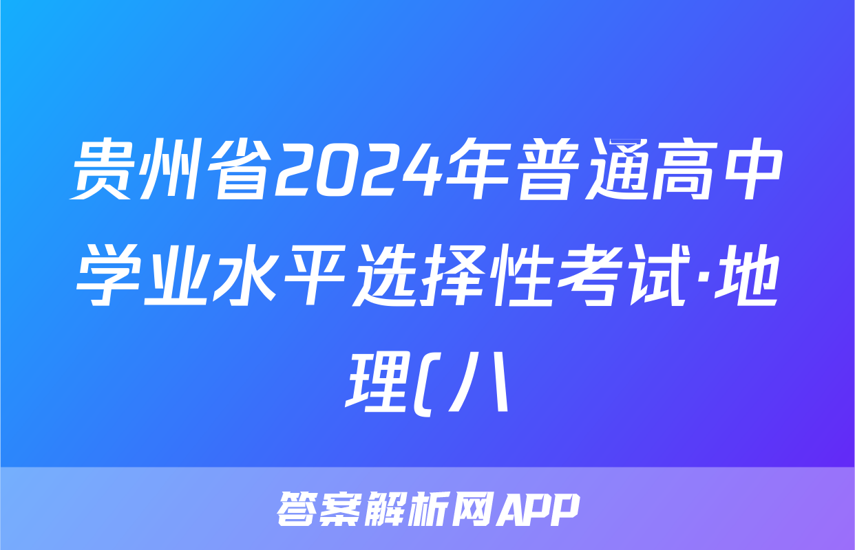 贵州省2024年普通高中学业水平选择性考试·地理(八)8[24·(新高考)ZX·MNJ·地理·GZ]试题正在持续更新,目前2024届最新高考模拟示范卷答案网为大家整理了相关试题及答案,供大家查缺补漏,高效提升成绩。