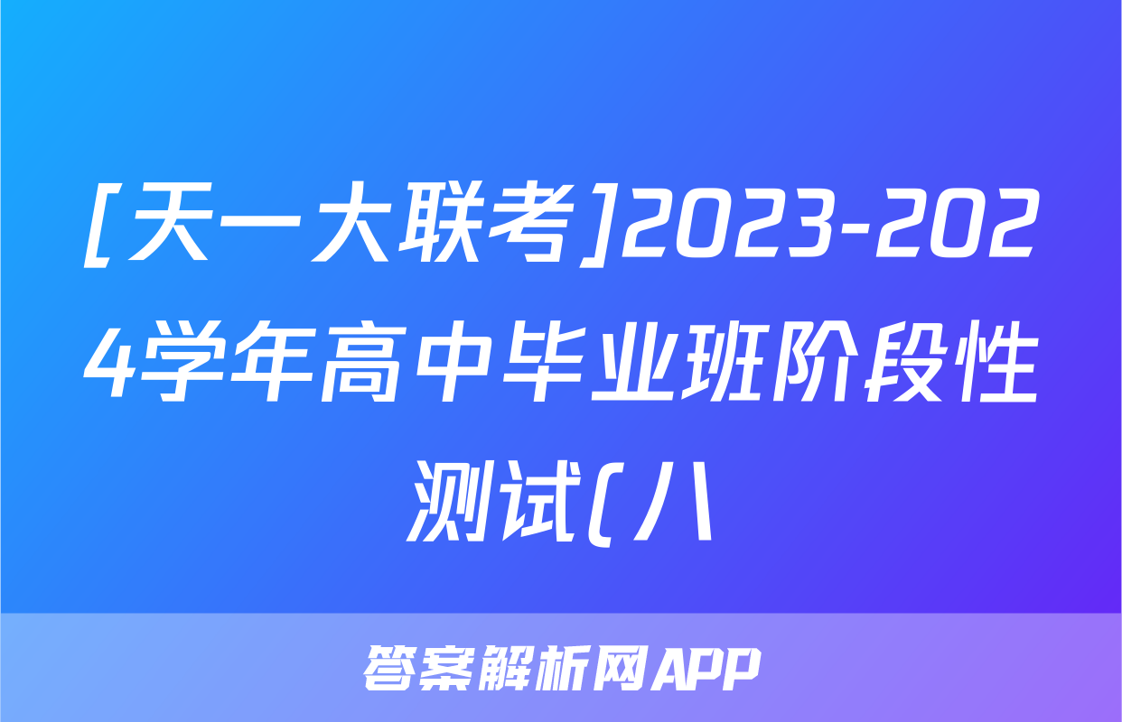 [天一大联考]2023-2024学年高中毕业班阶段性测试(八)8试卷及答案答案(地理)正在持续更新,目前2024届最新高考模拟示范卷答案网为大家整理了相关试题及答案,供大家查缺补漏,高效提升成绩。