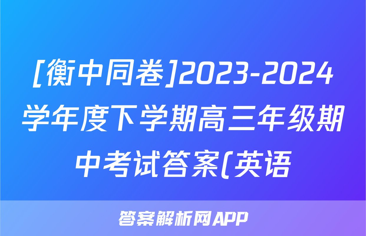 [衡中同卷]2023-2024学年度下学期高三年级期中考试答案(英语)正在持续更新,目前2024届最新高考模拟示范卷答案网为大家整理了相关试题及答案,供大家查缺补漏,高效提升成绩。