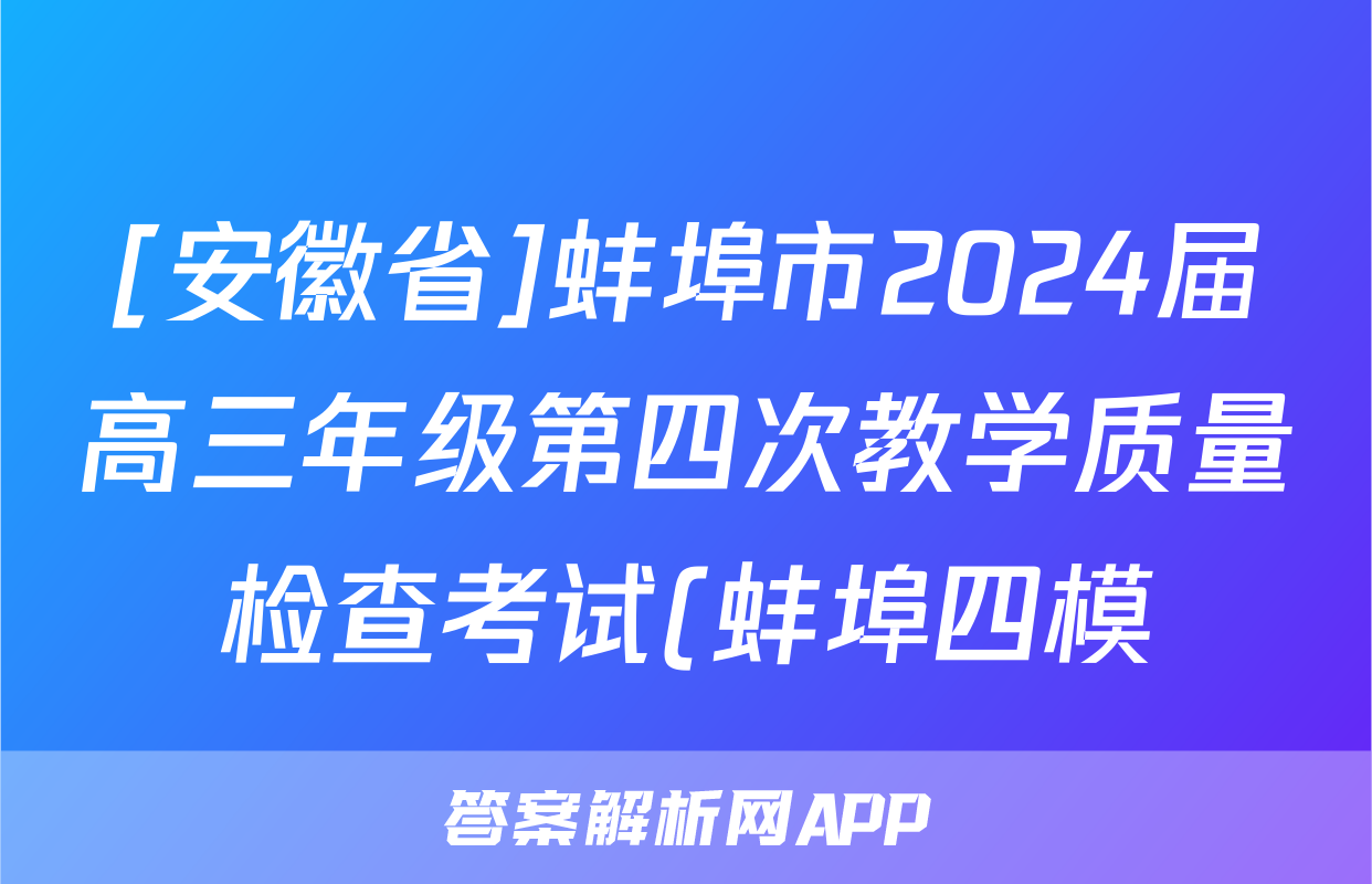 [安徽省]蚌埠市2024届高三年级第四次教学质量检查考试(蚌埠四模)试题(语文)正在持续更新,目前2024届最新高考模拟示范卷答案网为大家整理了相关试题及答案,供大家查缺补漏,高效提升成绩。