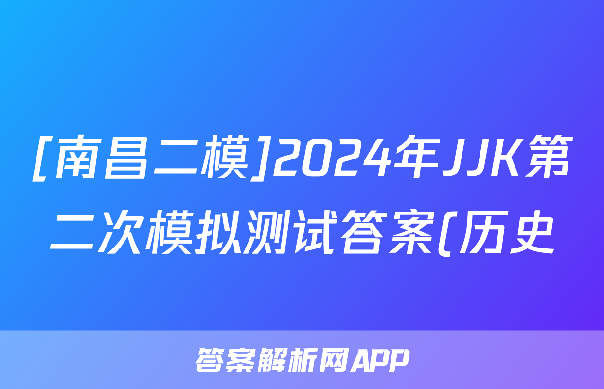 [南昌二模]2024年JJK第二次模拟测试答案(历史)正在持续更新,目前2024届最新高考模拟示范卷答案网为大家整理了相关试题及答案,供大家查缺补漏,高效提升成绩。