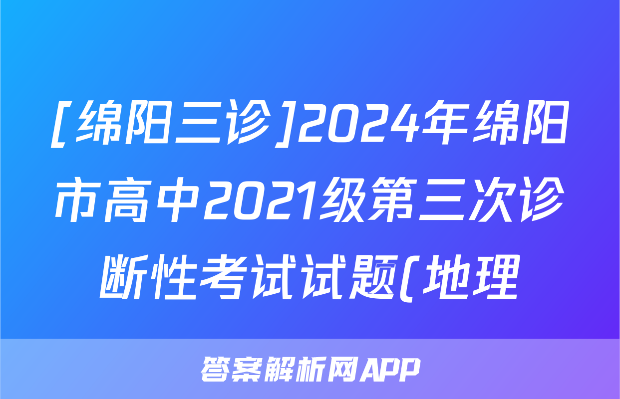[绵阳三诊]2024年绵阳市高中2021级第三次诊断性考试试题(地理)正在持续更新,目前2024届最新高考模拟示范卷答案网为大家整理了相关试题及答案,供大家查缺补漏,高效提升成绩。