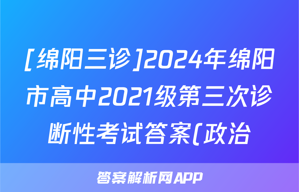 [绵阳三诊]2024年绵阳市高中2021级第三次诊断性考试答案(政治)正在持续更新,目前2024届最新高考模拟示范卷答案网为大家整理了相关试题及答案,供大家查缺补漏,高效提升成绩。