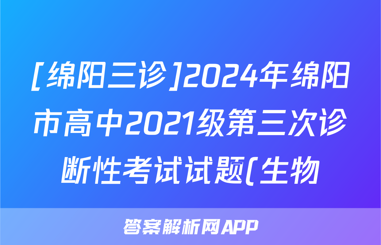 [绵阳三诊]2024年绵阳市高中2021级第三次诊断性考试试题(生物)正在持续更新,目前2024届最新高考模拟示范卷答案网为大家整理了相关试题及答案,供大家查缺补漏,高效提升成绩。