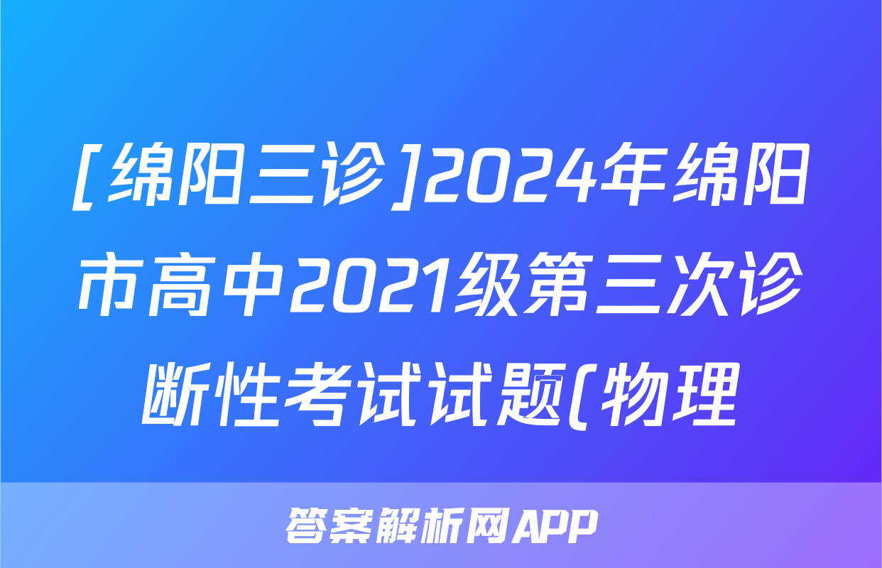 [绵阳三诊]2024年绵阳市高中2021级第三次诊断性考试试题(物理)正在持续更新,目前2024届最新高考模拟示范卷答案网为大家整理了相关试题及答案,供大家查缺补漏,高效提升成绩。