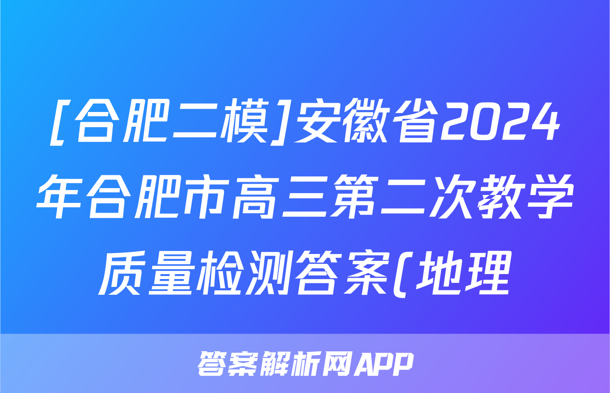 [合肥二模]安徽省2024年合肥市高三第二次教学质量检测答案(地理)正在持续更新,目前2024届最新高考模拟示范卷答案网为大家整理了相关试题及答案,供大家查缺补漏,高效提升成绩。