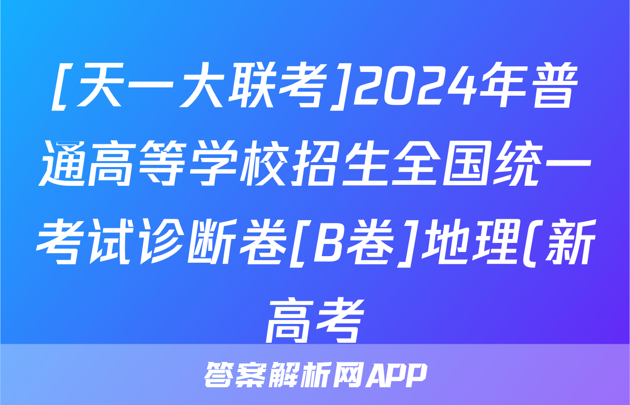 [天一大联考]2024年普通高等学校招生全国统一考试诊断卷[B卷]地理(新高考)试题正在持续更新,目前2024届最新高考模拟示范卷答案网为大家整理了相关试题及答案,供大家查缺补漏,高效提升成绩。