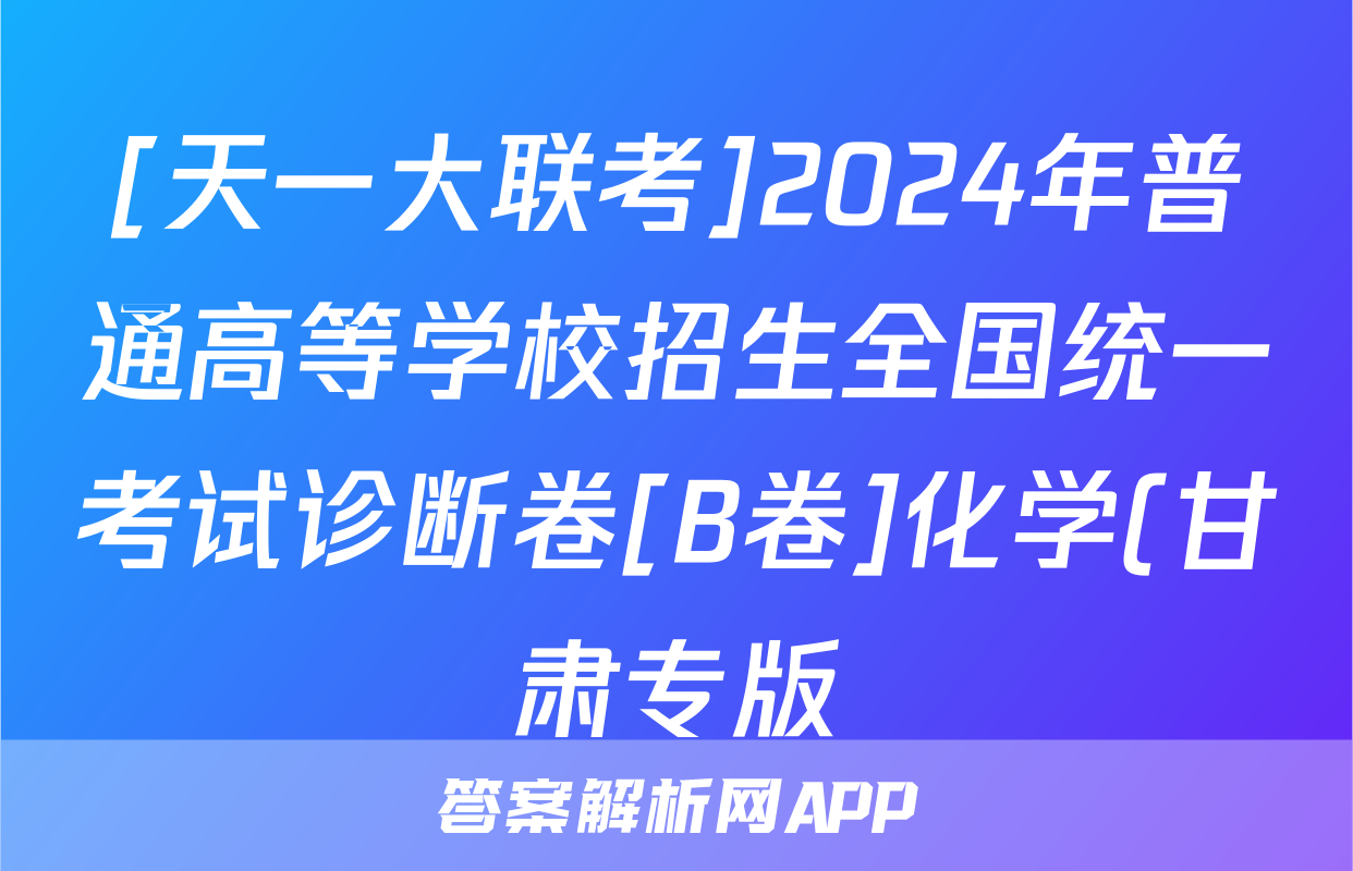 [天一大联考]2024年普通高等学校招生全国统一考试诊断卷[B卷]化学(甘肃专版)试题正在持续更新,目前2024届最新高考模拟示范卷答案网为大家整理了相关试题及答案,供大家查缺补漏,高效提升成绩。
