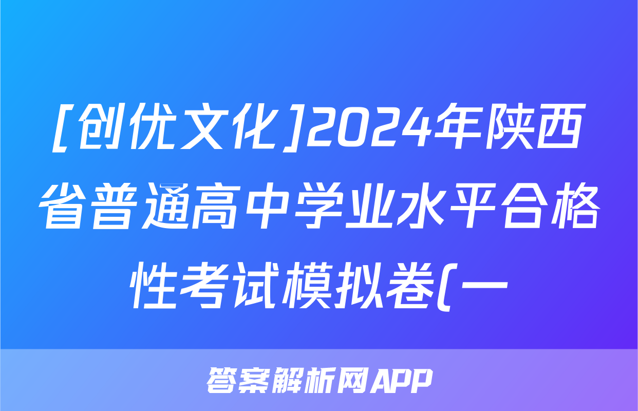 [创优文化]2024年陕西省普通高中学业水平合格性考试模拟卷(一)1答案(英语)正在持续更新,目前2024届最新高考模拟示范卷答案网为大家整理了相关试题及答案,供大家查缺补漏,高效提升成绩。