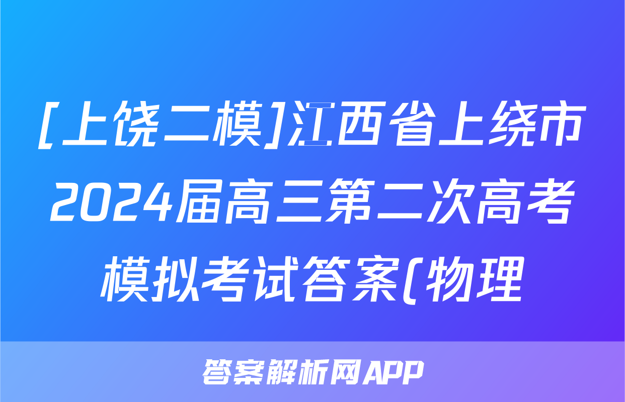 [上饶二模]江西省上绕市2024届高三第二次高考模拟考试答案(物理)正在持续更新,目前2024届最新高考模拟示范卷答案网为大家整理了相关试题及答案,供大家查缺补漏,高效提升成绩。
