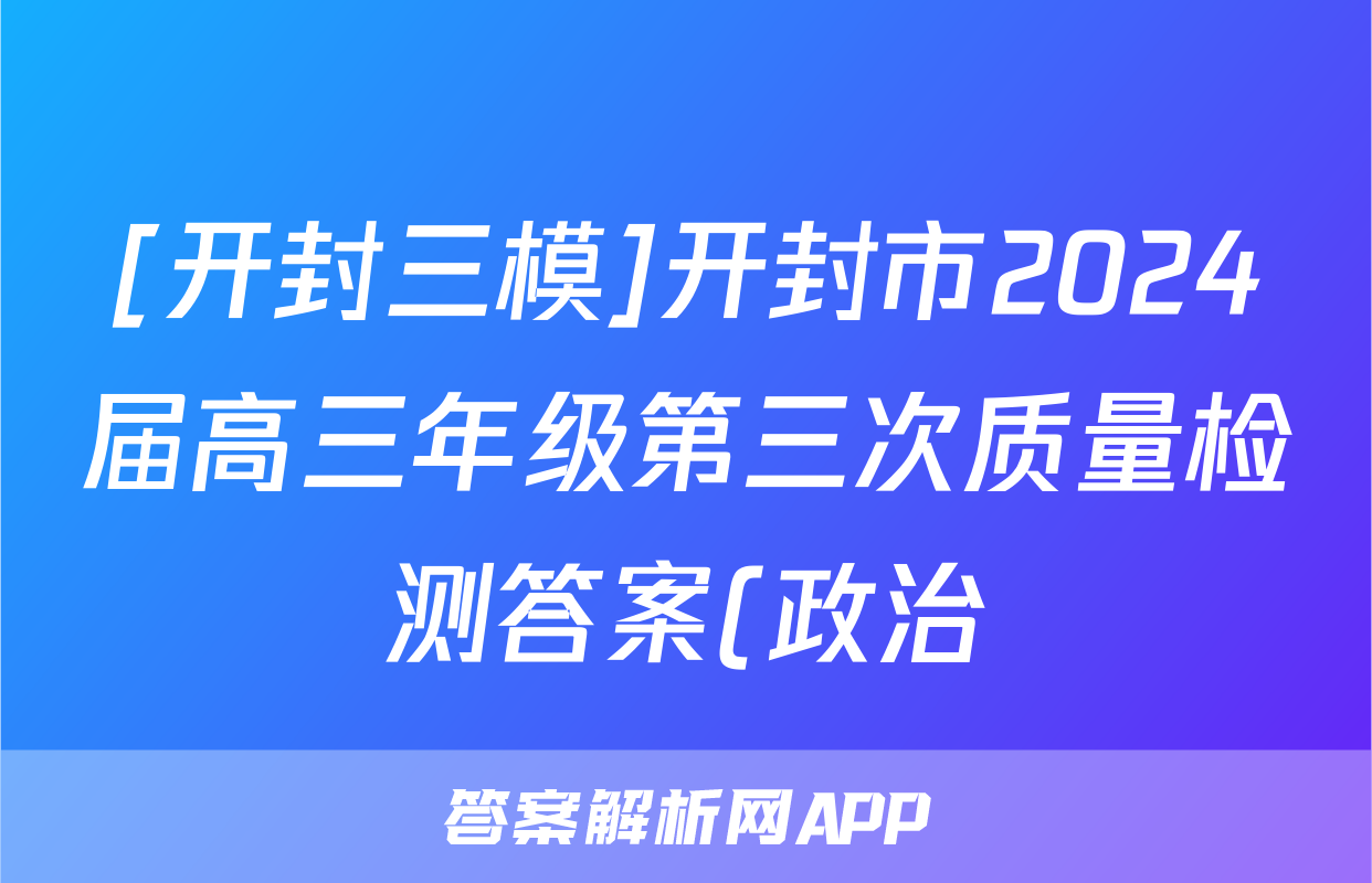[开封三模]开封市2024届高三年级第三次质量检测答案(政治)正在持续更新,目前2024届最新高考模拟示范卷答案网为大家整理了相关试题及答案,供大家查缺补漏,高效提升成绩。