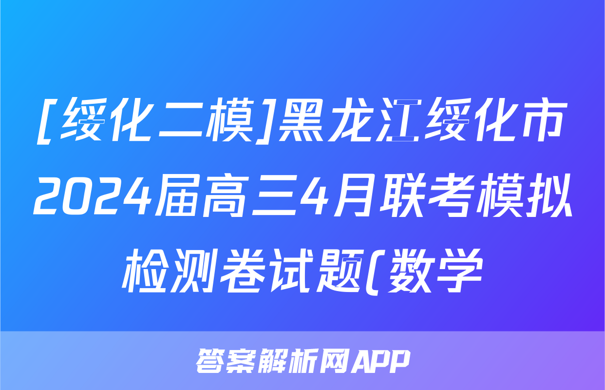 [绥化二模]黑龙江绥化市2024届高三4月联考模拟检测卷试题(数学)正在持续更新,目前2024届最新高考模拟示范卷答案网为大家整理了相关试题及答案,供大家查缺补漏,高效提升成绩。