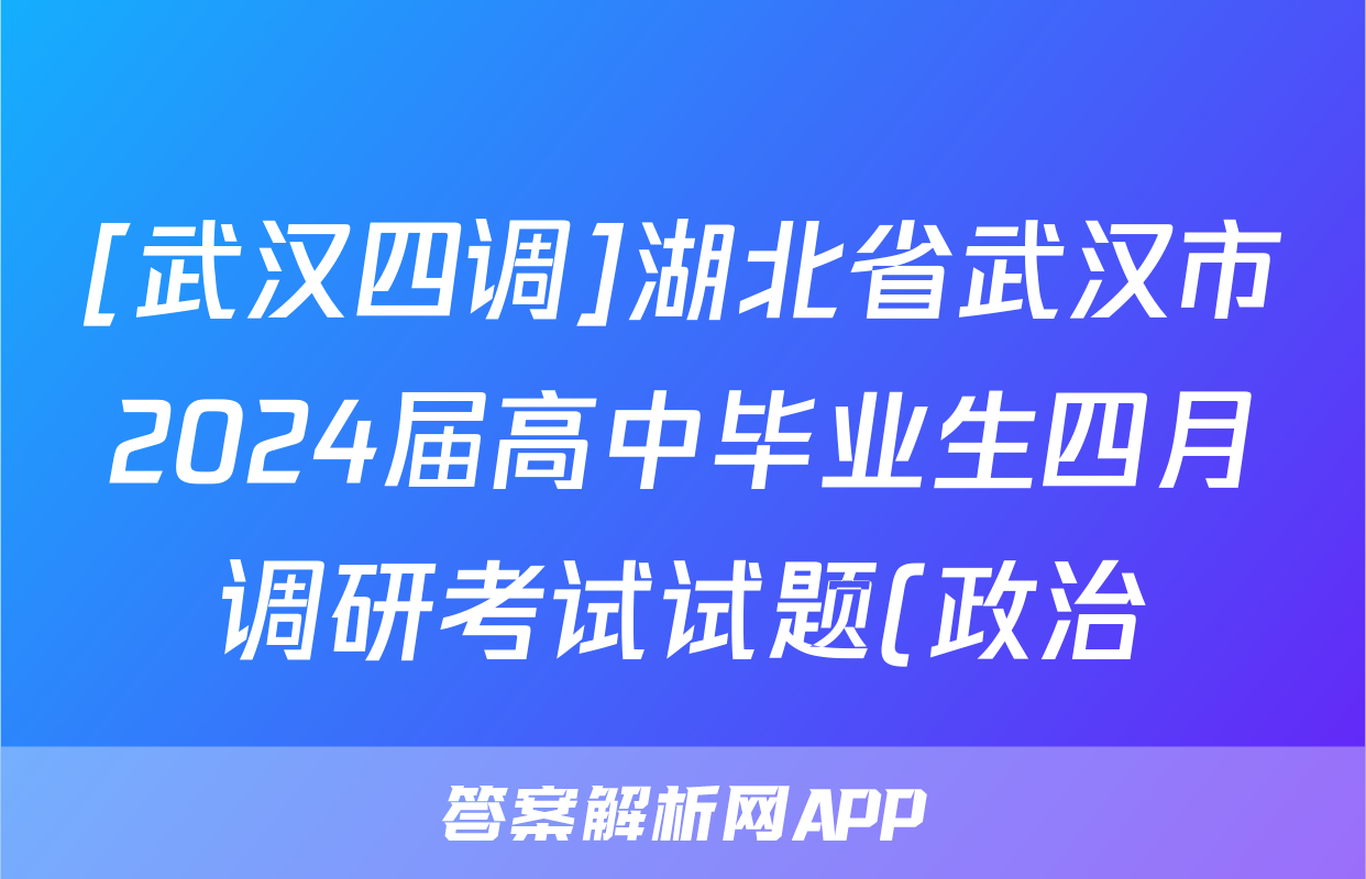[武汉四调]湖北省武汉市2024届高中毕业生四月调研考试试题(政治)