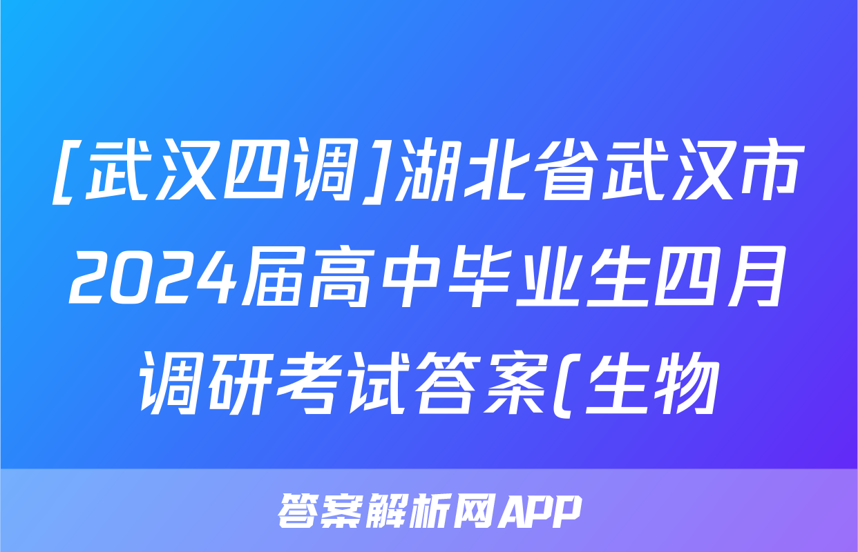 [武汉四调]湖北省武汉市2024届高中毕业生四月调研考试答案(生物)正在持续更新,目前2024届最新高考模拟示范卷答案网为大家整理了相关试题及答案,供大家查缺补漏,高效提升成绩。