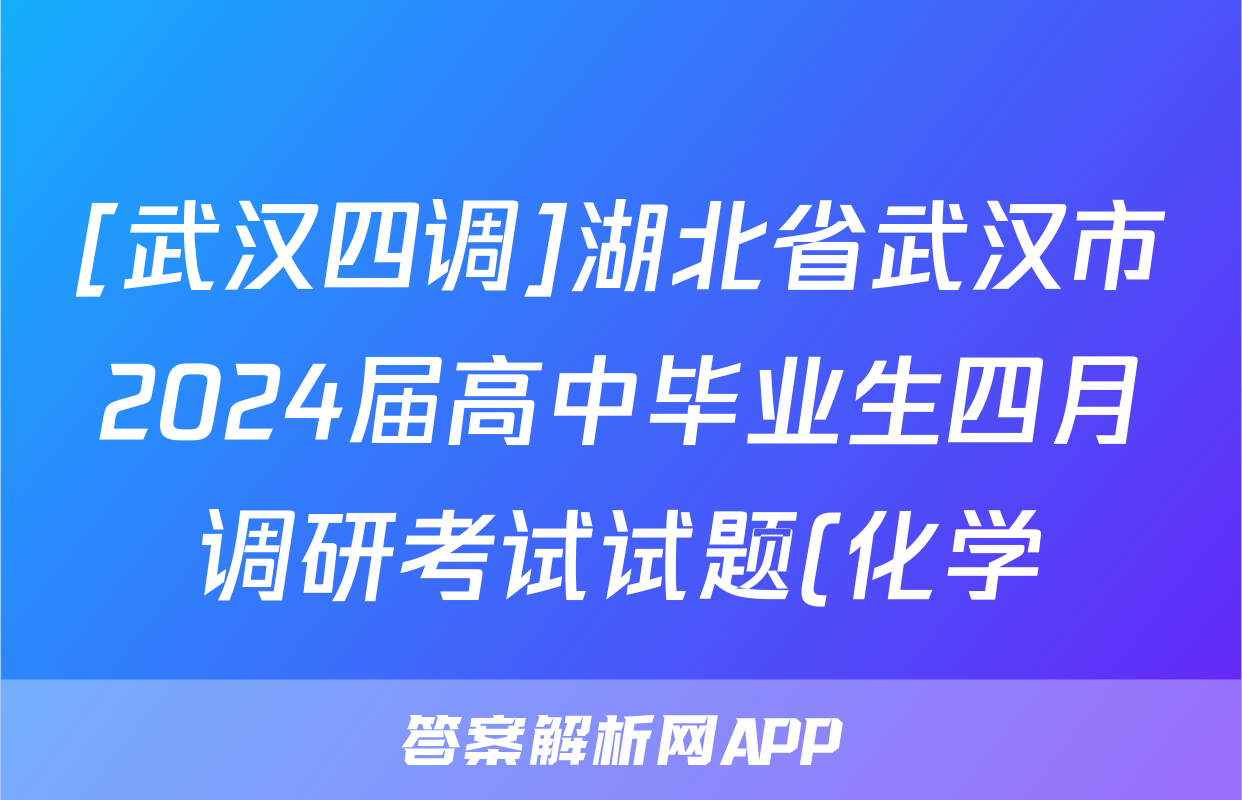 [武汉四调]湖北省武汉市2024届高中毕业生四月调研考试试题(化学)正在持续更新,目前2024届最新高考模拟示范卷答案网为大家整理了相关试题及答案,供大家查缺补漏,高效提升成绩。