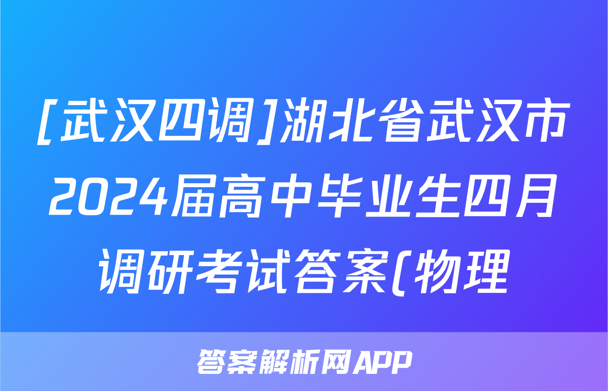 [武汉四调]湖北省武汉市2024届高中毕业生四月调研考试答案(物理)正在持续更新,目前2024届最新高考模拟示范卷答案网为大家整理了相关试题及答案,供大家查缺补漏,高效提升成绩。
