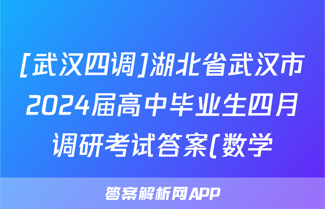 [武汉四调]湖北省武汉市2024届高中毕业生四月调研考试答案(数学)正在持续更新,目前2024届最新高考模拟示范卷答案网为大家整理了相关试题及答案,供大家查缺补漏,高效提升成绩。