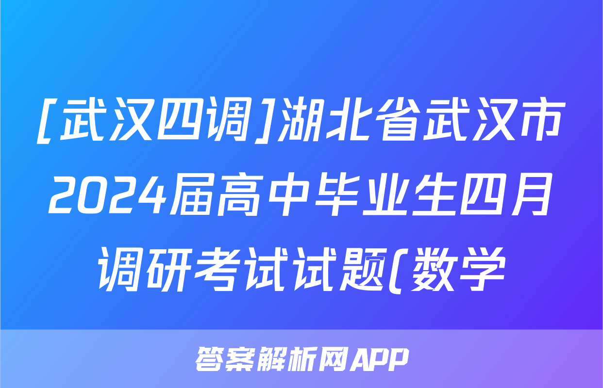[武汉四调]湖北省武汉市2024届高中毕业生四月调研考试试题(数学)正在持续更新,目前2024届最新高考模拟示范卷答案网为大家整理了相关试题及答案,供大家查缺补漏,高效提升成绩。