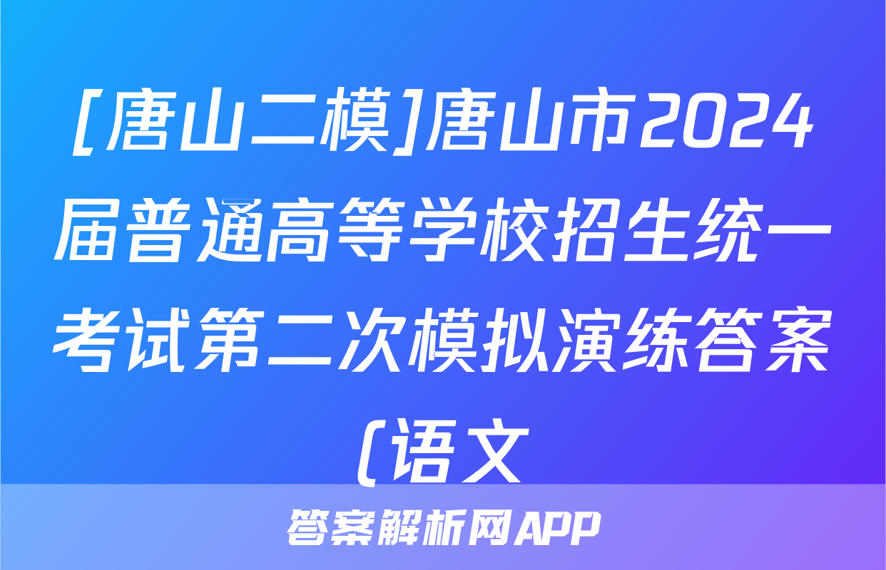 [唐山二模]唐山市2024届普通高等学校招生统一考试第二次模拟演练答案(语文)正在持续更新,目前2024届最新高考模拟示范卷答案网为大家整理了相关试题及答案,供大家查缺补漏,高效提升成绩。