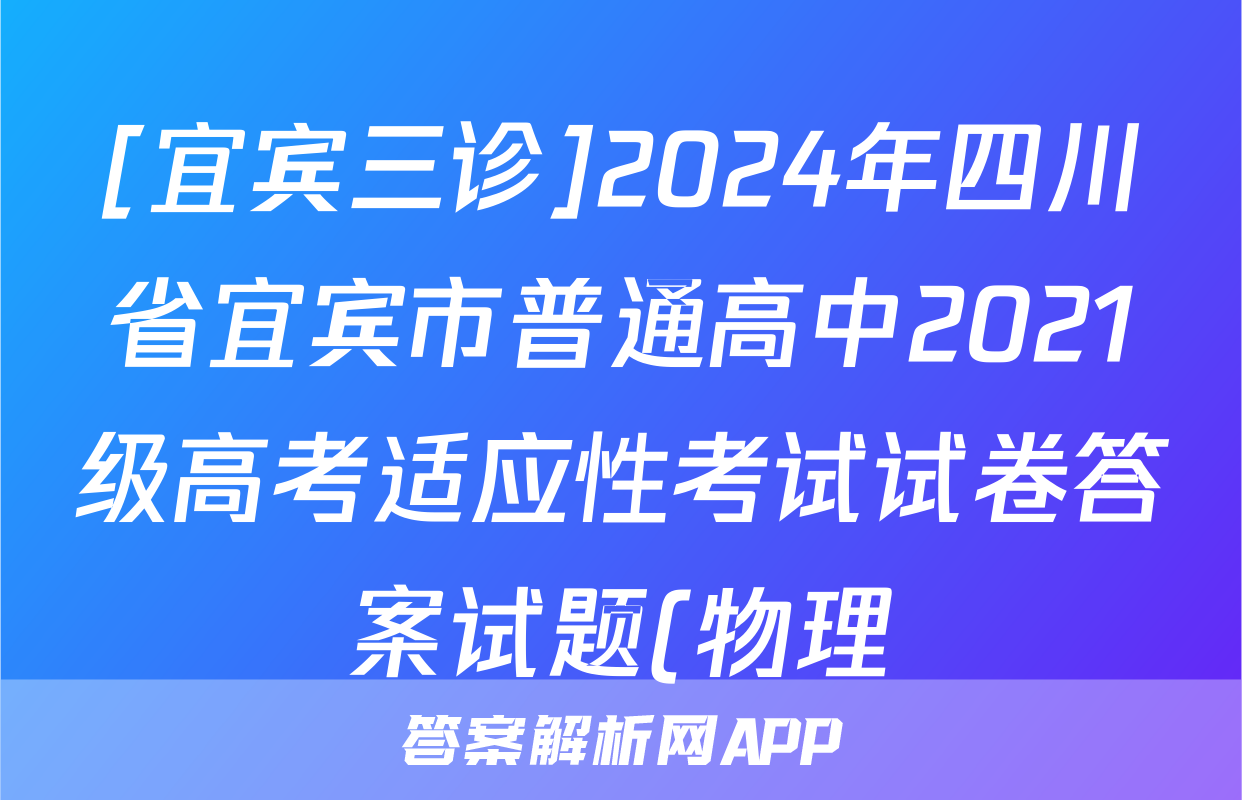 [宜宾三诊]2024年四川省宜宾市普通高中2021级高考适应性考试试卷答案试题(物理)正在持续更新,目前2024届最新高考模拟示范卷答案网为大家整理了相关试题及答案,供大家查缺补漏,高效提升成绩。