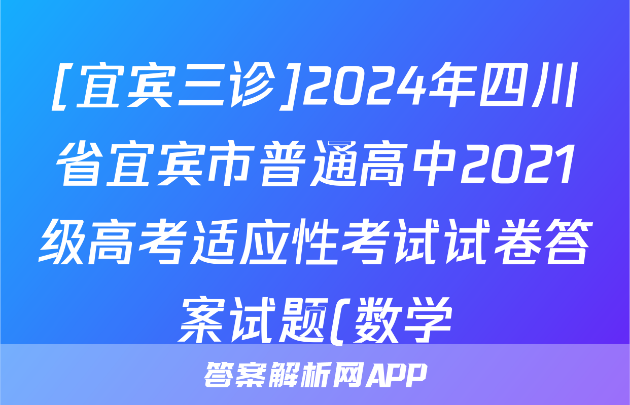[宜宾三诊]2024年四川省宜宾市普通高中2021级高考适应性考试试卷答案试题(数学)正在持续更新,目前2024届最新高考模拟示范卷答案网为大家整理了相关试题及答案,供大家查缺补漏,高效提升成绩。