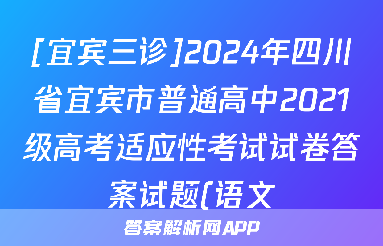 [宜宾三诊]2024年四川省宜宾市普通高中2021级高考适应性考试试卷答案试题(语文)正在持续更新,目前2024届最新高考模拟示范卷答案网为大家整理了相关试题及答案,供大家查缺补漏,高效提升成绩。