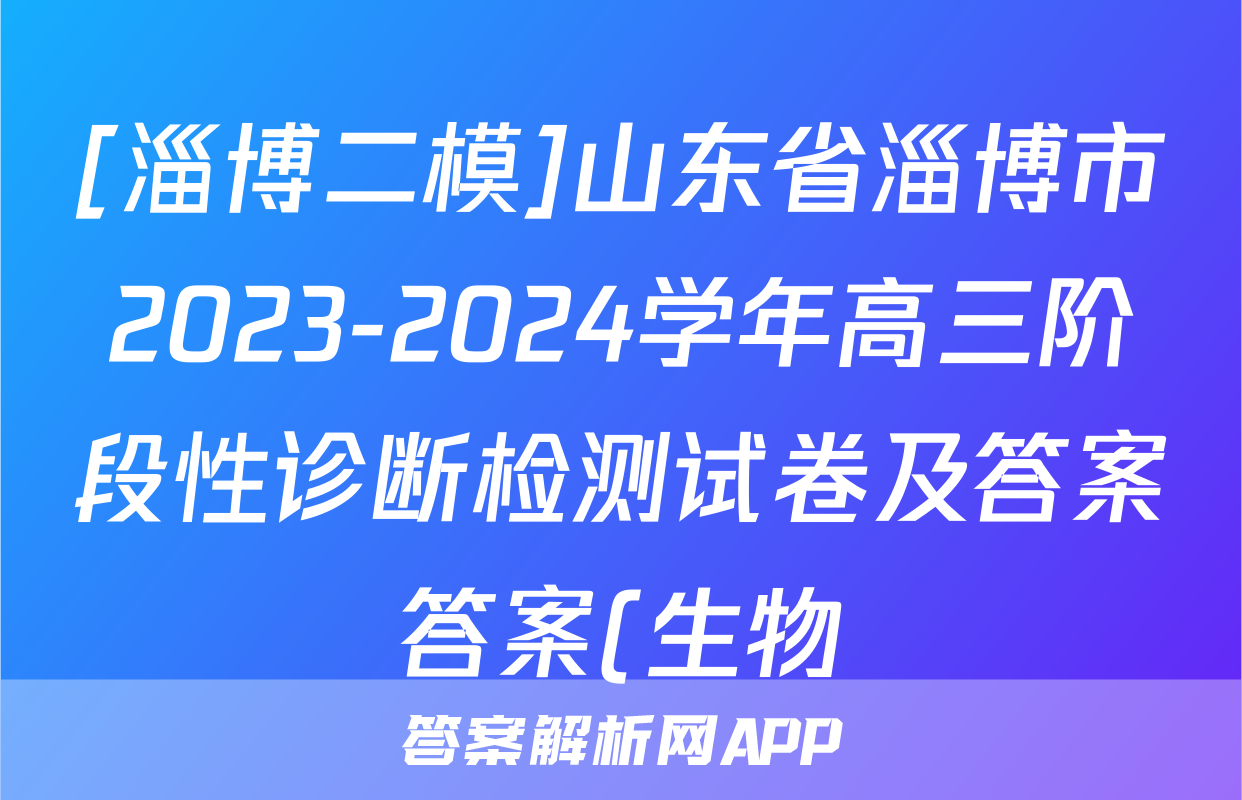 [淄博二模]山东省淄博市2023-2024学年高三阶段性诊断检测试卷及答案答案(生物)正在持续更新,目前2024届最新高考模拟示范卷答案网为大家整理了相关试题及答案,供大家查缺补漏,高效提升成绩。
