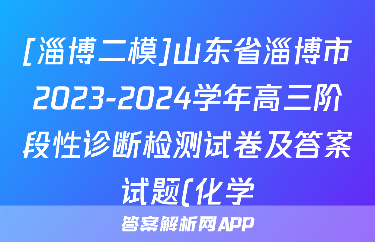 [淄博二模]山东省淄博市2023-2024学年高三阶段性诊断检测试卷及答案试题(化学)正在持续更新,目前2024届最新高考模拟示范卷答案网为大家整理了相关试题及答案,供大家查缺补漏,高效提升成绩。