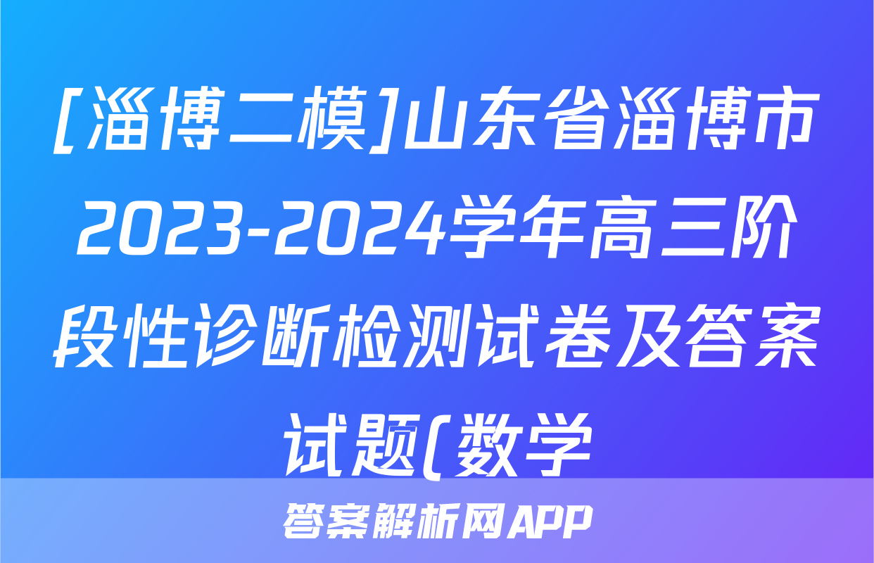 [淄博二模]山东省淄博市2023-2024学年高三阶段性诊断检测试卷及答案试题(数学)正在持续更新,目前2024届最新高考模拟示范卷答案网为大家整理了相关试题及答案,供大家查缺补漏,高效提升成绩。