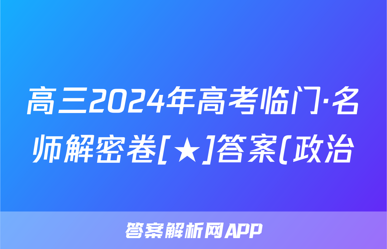 高三2024年高考临门·名师解密卷[★]答案(政治)正在持续更新,目前2024届最新高考模拟示范卷答案网为大家整理了相关试题及答案,供大家查缺补漏,高效提升成绩。