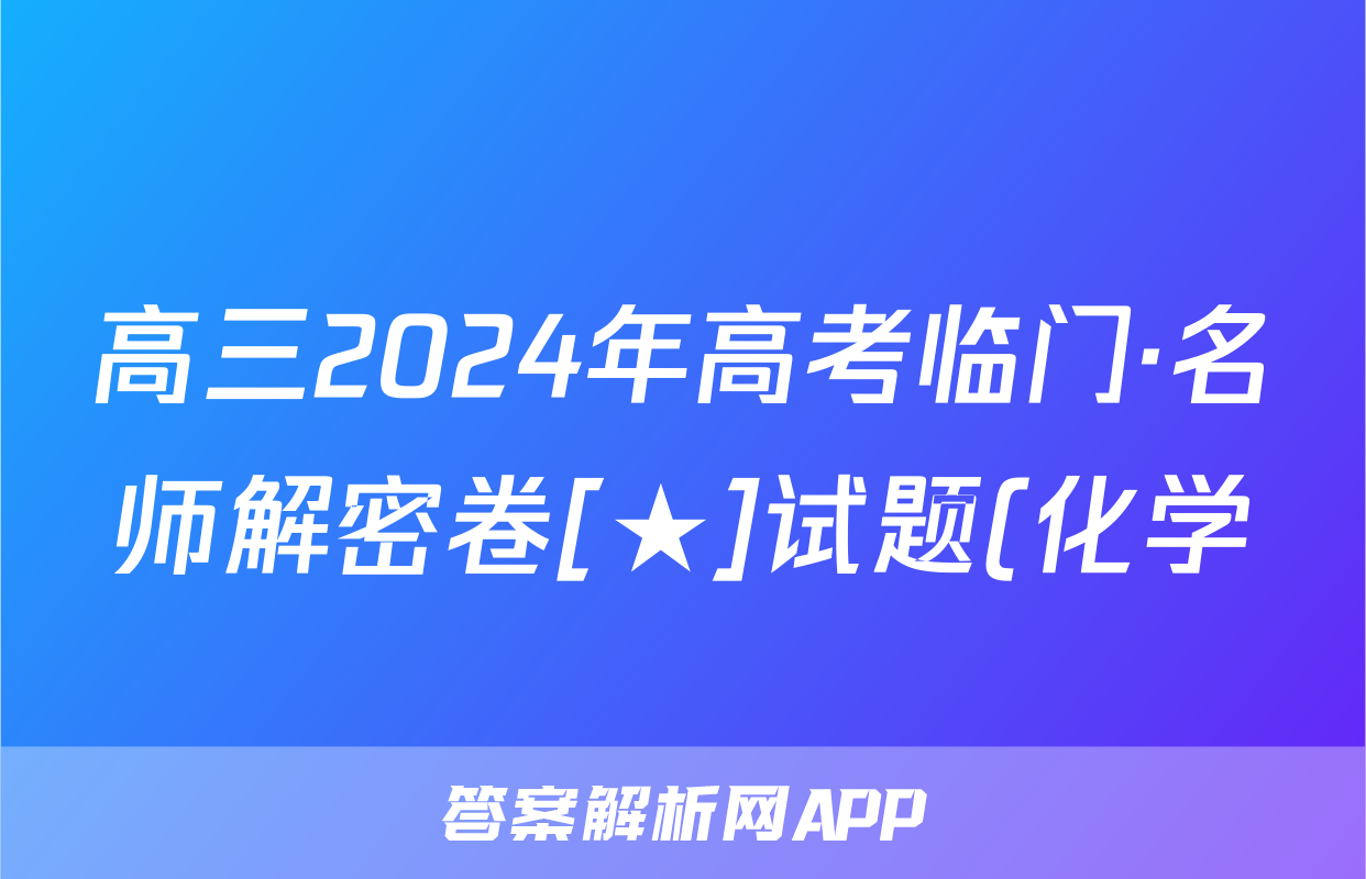 高三2024年高考临门·名师解密卷[★]试题(化学)正在持续更新,目前2024届最新高考模拟示范卷答案网为大家整理了相关试题及答案,供大家查缺补漏,高效提升成绩。