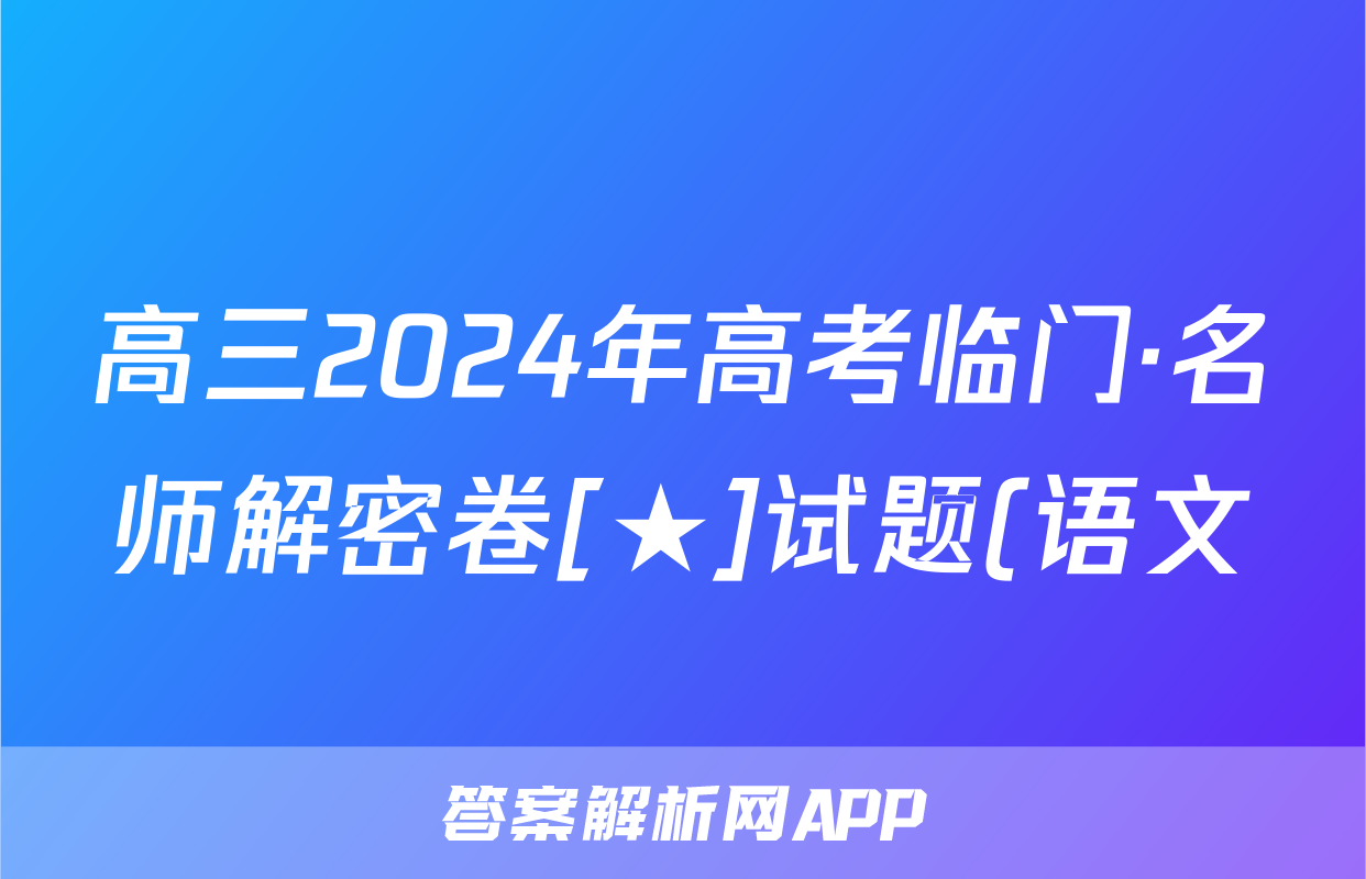 高三2024年高考临门·名师解密卷[★]试题(语文)正在持续更新,目前2024届最新高考模拟示范卷答案网为大家整理了相关试题及答案,供大家查缺补漏,高效提升成绩。